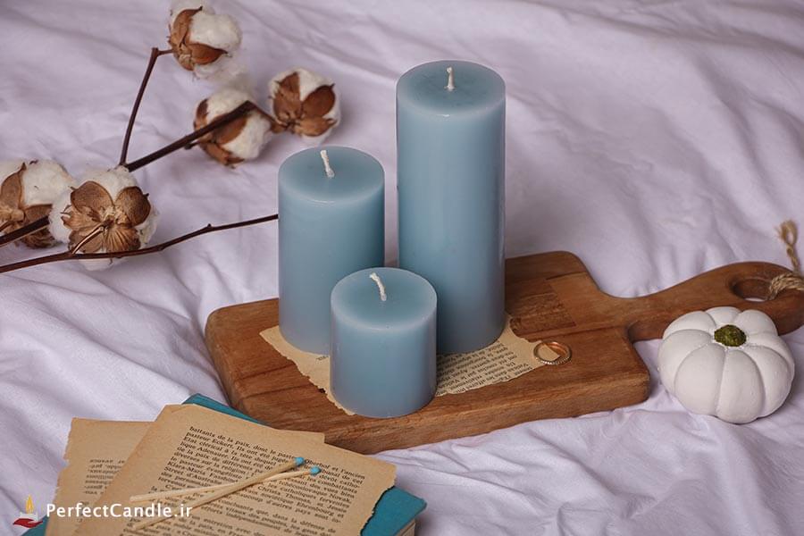 - ست ۳ تایی شمع استوانه ای آبی تیفانی