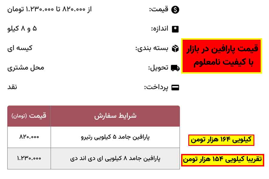 - قیمت پارافین در بازار