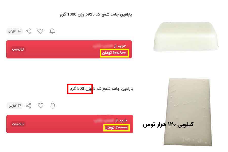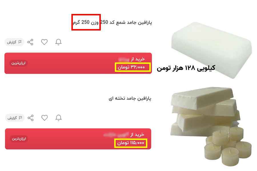 خب قیمت ها رو دیدیم. قیمت های ۱۱۰ هزار تومن، ۱۳۰ هزار تومن(نیم کیلو ۶۰، ۷۰ تومن) و قیمت های تو این محدوده الان قیمت عادی و طبیعی برای پارافین شده. اما نه تو شمع پرفکت…